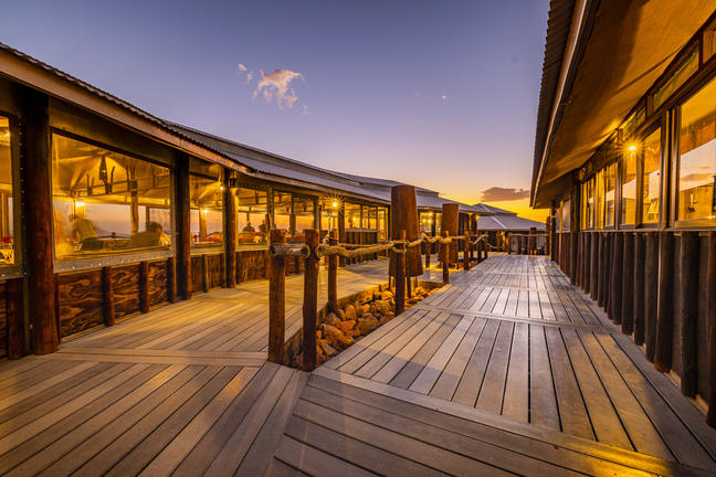 Prenota un tour avventura come una passeggiata guidata nella natura per vivere la vegetazione lussureggiante, un giro emozionante sulla quindicesima linea zip più lunga del mondo, un viaggio naturalistico fino allo storico klip di Vinger e molto altro ancora. Gli alloggi dell'Ugab Terrace Lodge sono composti da 16 chalet disposti in un semicerchio sul bordo della montagna con una vista panoramica sulle valli aperte e sulle antiche terrazze formate dalla corrosione dell'acqua milioni di anni fa. C'è anche un ristorante e bar con vista sulla Rock Vinger e sulla splendida valle di Ugab Terraces.