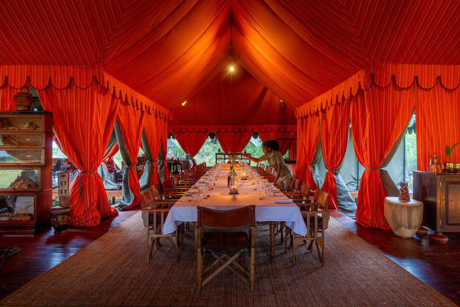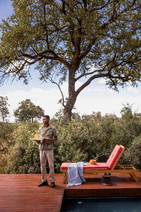 Set around a waterhole in the heart of the dry mopane forest, Elephant Pan is stylishly simple with guest accommodation in eight tents overlooking the waterhole with its big elephant action. In the morning, you’ll open your tent flaps straight on to the trumpeting elephant in the lily-filled waters below, spend your siesta watching herds splash and snort, and fall asleep to antelope grazing just outside your canvas walls. This isn’t a place for those looking for opulence and extravagance; it’s a private piece of big-game Africa, where the wildlife encounters are authentic, intimate and always wild.