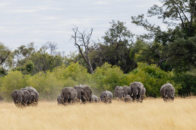 Situated on the Matsebi River, Mokolwane camp is made up of tree houses 2 metres off the ground. A real haven for elephants that love the palm trees of this area. This camp is situated in the open flood plains that receive floodwater 3 weeks earlier than the southern areas of the concession. The vegetation consists of smaller palm islands and wide-open spaces.