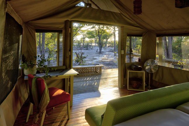 Mokolwane is made up of 7 charming canvas tents, with the accommodation boasting superb views, each with a private bathroom. The Matsebi River is your main feeder for Lake Ngami, which is historically famous to the region.