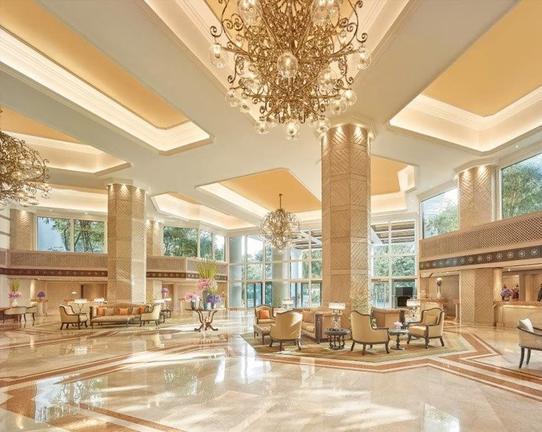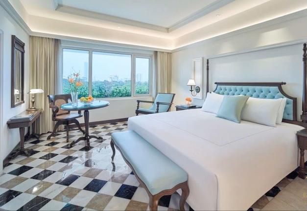 The Taj Mahal New Delhi is a luxury hotel located on Mansingh Road in the heart of Lutyens’ Delhi, close to India Gate. Guests can explore nearby attractions such as the Red Fort, Humayun’s Tomb, Lodhi Gardens, and Dilli Haat. Guest rooms feature minibars, electronic safes, tea and coffee facilities, complimentary Wi-Fi, flat-screen TV, and private bathrooms. Dining options include Machan for international cuisine, House of Ming for Chinese specialities, Varq for modern Indian dishes, Emperor Lounge, Captain’s Cellar, and Rick’s bar. Facilities encompass the J Wellness Circle, swimming pool, elegant banquet spaces, concierge services, and curated cultural tours.