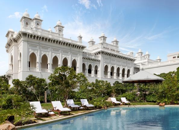 Taj Falaknuma Palace in Hyderabad, Telangana, stands majestically 609 metres above the city, once the residence of the Nizams. Nearby attractions include Charminar, Golconda Fort, Chowmahalla Palace, Salar Jung Museum, and Hussain Sagar Lake. Guest rooms feature electronic safes, basic Wi-Fi, flat-screen TVs, hairdryers and private bathrooms. Guests can savour Hyderabadi cuisine at Adaa, fine dining at Celeste, unique experiences at Gol Bungalow, and relax at the Hookah Bar. Facilities include the J Wellness Circle spa, a large outdoor pool, fitness centre, vast library, and curated cultural experiences.