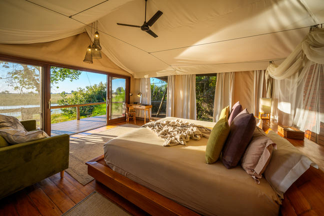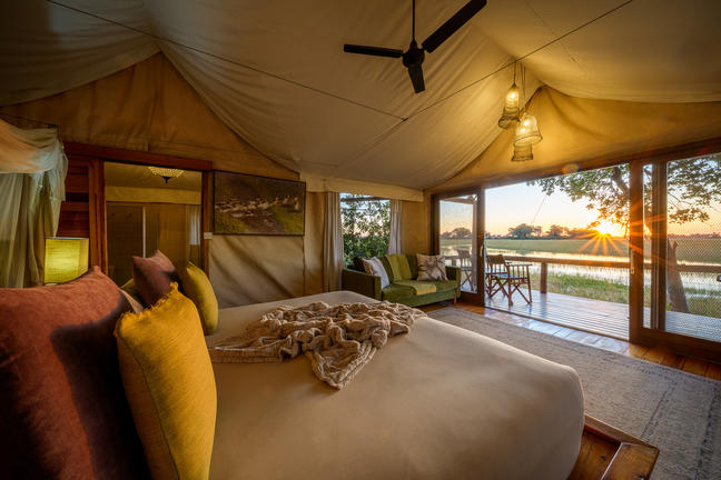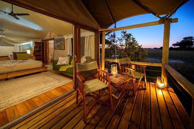 With just five spacious en-suite tents, each featuring an outdoor shower and elevated wooden deck, Jacana provides an intimate and authentic Delta experience. The camp is particularly renowned for exceptional birdlife, including Pel’s fishing owl, African and lesser jacana, slaty egret and African pygmy goose, alongside red lechwe, hippo and elephant that thrive in this water-rich ecosystem.