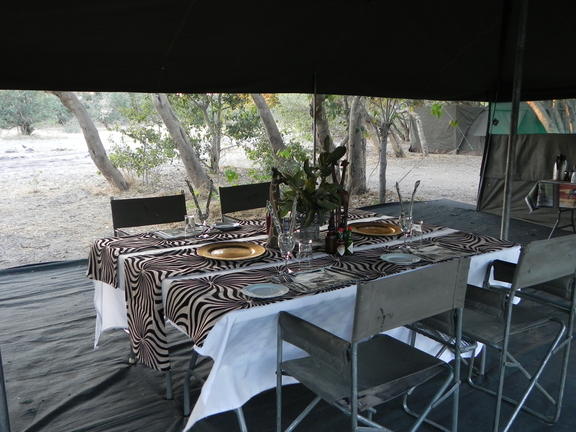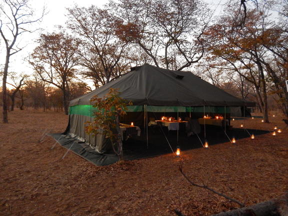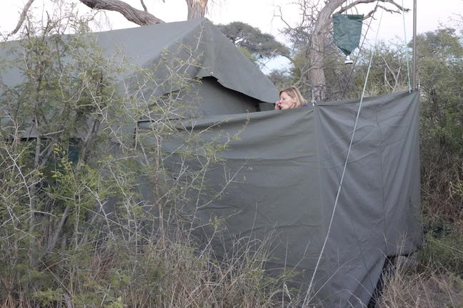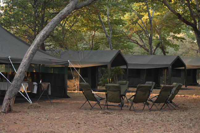 Ce camp mobile de catégorie supérieure appelé ; Camp Itinérant semi - luxe, se Compote d'hébergement en tente spacieuse (L4m, H2.20m, P3m), offrant une bonne ventilation. Toutes les tentes possèdent des moustiquaires aux fenêtres. Plus une salle de bain de brousse á ciel ouvert privé/ ensuite, (L2m, H2.20m, p3m) avec douche á sceau d'eau á température désirée, serviette de bain, bassin, miroir et toilettes de brousse (sèche). Selon votre choix, votre tente peut se composer de lits jumeaux ou d'un lit double très confortablement installé avec matelas de qualité supérieure, draps, couettes, oreillers et couvertures. Il y a aussi assez de place pour y ajouter un lit simple supplémentaire pour un enfant. Une véranda (L2, H2.20, p3m) ombragé sur le devant de la tente, avec fauteuils bien aidéés pendant les moments de repos.