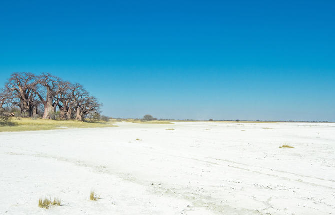 Tout comme les Makgadikgadi Pans, les Nxai Pans sont les vestiges d’anciens lacs salés. Aujourd’hui durant la saison verte ils deviennent des océans d’herbe grasse pointillés de petits bosquets et de petits pans qui se remplissent d’eau durant la saison des pluies. Ici vous pourrez voir de beaux Baobab… mais vous ne pourrez plus voir le célèbre Baines Baobabs, sombré en début 2016 et vieux de presque mille ans.