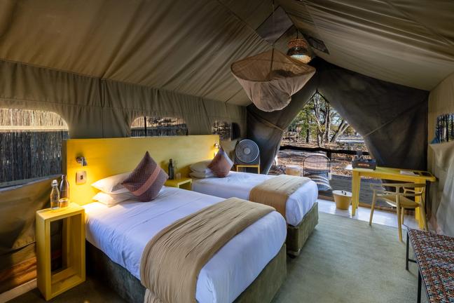 Elephant Pan revels in its location, tucked deep within the sandy mopane forests of the drier interior of Khwai Private Reserve. This laid-back camp sits beside a busy waterhole that draws wildlife throughout the day, giving guests a front-row seat to the action. If you’ve always wanted to get up close to ellies, this is the place. Stylishly simple in design, the camp offers eight canvas tents overlooking the bustling waterhole. Mornings begin with the sound of elephants trumpeting as you open your tent flaps, afternoons are spent watching herds splash and snort in the shallows, and evenings unfold around the camp fire. This isn’t a place for opulence or extravagance. Elephant Pan is a private corner of big-game Africa where the wildlife encounters are authentic, intimate and always wild.