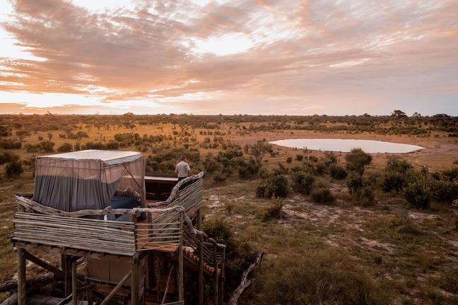 On the ground level, refreshments and meals are served al fresco, lit up at night by the central campfire and star filled skies. During the rainy season, which generally runs from November to April, Skybeds guests will be accommodated at Hyena Pan Camp should weather conditions be unfavourable for the sleep out experience.