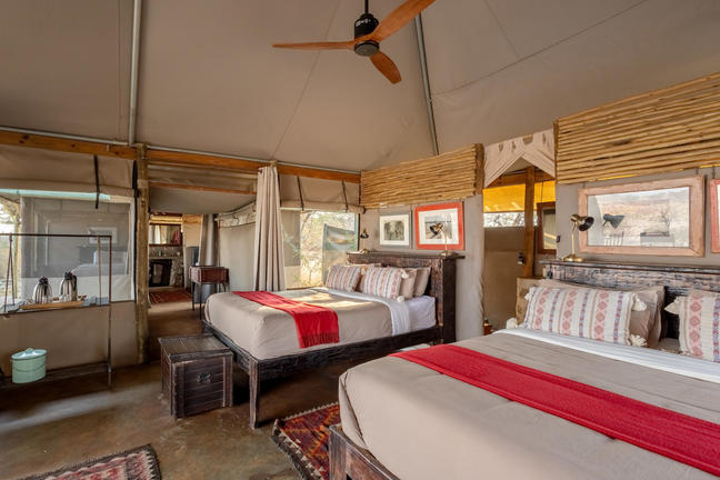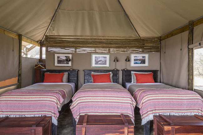 The central camp facilities are comprised of the dining, lounge and bar areas. An additional lounge area leads to a central firepit, both being ideal relaxation spaces. The pool area offers guests the perfect game-viewing platform and photogenic opportunities.