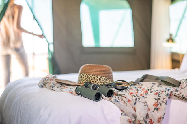 Camp Sossus emphasises every aspect of our intention to redefine immersive exploration and luxury. Our own definition of this encompasses privacy, intimacy, experiential focus and total flexibility, all whilst being perfectly comfortable. The camp offers just six tented guest rooms and is open year-round, providing a great alternative to any traditional lodge or camp in the Sossusvlei area, whilst offering unparalleled opportunities for immersive exploration of the Namib Desert environment. The large west-facing windows and south-facing doors in the tented guest rooms allow natural cooling by the predominant afternoon south westerly wind, and the tents all have a basic infrastructure that offers important comforts. These include semi open-air en suite bathrooms with flush toilets and hot bucket showers with locally sourced amenities, comfortable extra-length three-quarter twin beds, solar lighting, 220V electrical charging station, pedestal fan, shaded patio, shaded day-bed and a magnificent star bed. The essence of the camp therefore remains both experiential and immersive.