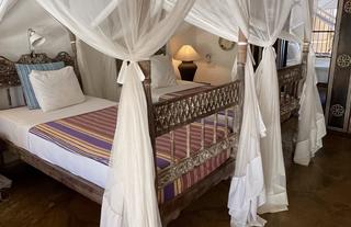 Cottage 4/Mbuyu - Cottage 1 chambre double avec une chambre simple communicante (salle de bains commune) - ventilateurs de plafond et vue sur la mer. Air conditionné.
