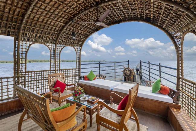 Set on the tranquil waters of Lake Vembanad in Kumarakom, Kerala, the Kumarakom Lake Resort Houseboat offers a luxurious escape aboard traditional kettuvalloms. The houseboats feature air-conditioned bedrooms and dining areas, a personal crew with an onboard chef, and flat-screen televisions. Guests enjoy complimentary purified water, tea and coffee service, luxury bath amenities, and Wi-Fi access. Dining is an immersive experience with freshly prepared meals served onboard, while resort guests also have access to the main property's swimming pool, fitness centre, and award-winning Ayurveda spa.