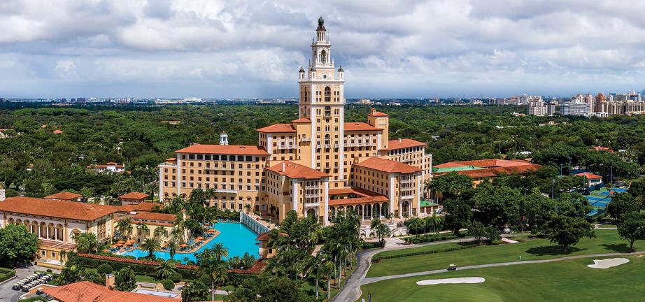 Nestled in Coral Gables near Miami Beach and downtown Miami, The Biltmore Hotel is a celebrated National Historic Landmark. Guests enjoy proximity to attractions like Miracle Mile, Vizcaya Museum, and the vibrant Wynwood Arts District. Guest rooms feature open-air balconies, elegant designer touches, travertine floors, hand-painted frescos, and carved mahogany furnishings. Dining options include Fontana’s Italian cuisine, Cascade’s poolside fare, Fairways’ golf-side meals, and the renowned Sunday Brunch. The hotel boasts a championship golf course, expansive spa, fitness centre, tennis and pickleball courts, and one of the largest hotel pools in the U.S., complete with private cabanas.