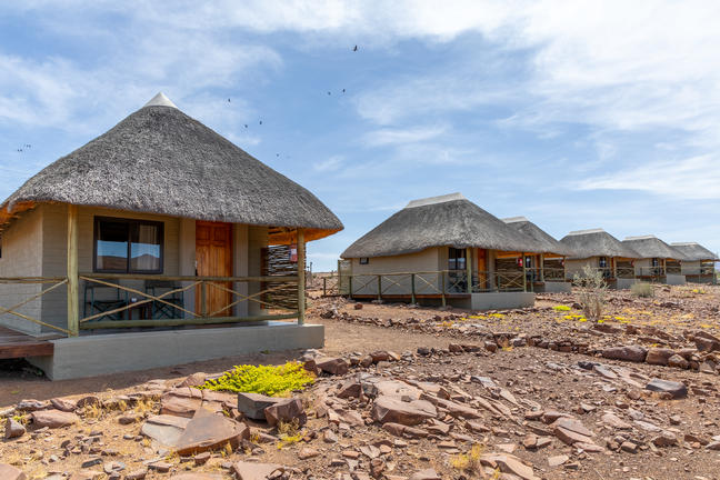 Das Puros Bush Lodge and Camp befindet sich am Ufer des Flusses Hoarusib im Puros Conservancy in Namibia. Die Unterkunftsmöglichkeiten bestehen aus perfekt ausgestatteten Chalets zur Selbstverpflegung mit eigenem Bad und bequemen Betten. Zu den weiteren Unterkünften gehören fünf private Campingplätze im Schatten von Kameldornbäumen mit Wasserstellen und Grilleinrichtungen. Die Lodge bietet private oder gemeinschaftliche Grillplätze, eine Lapa, einen Essbereich und eine Bar.