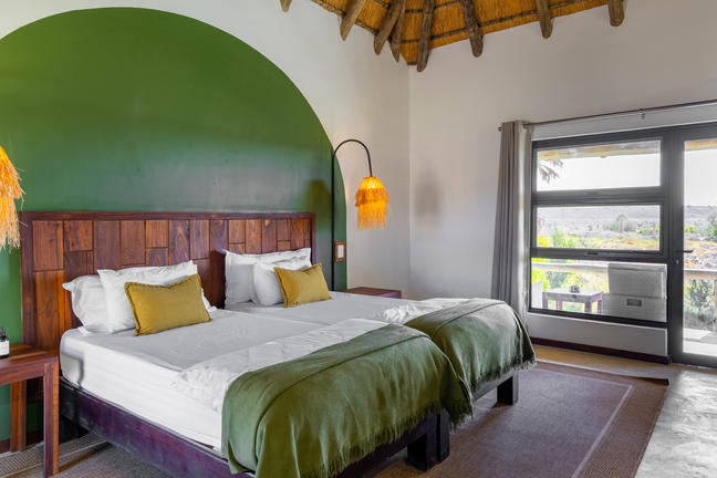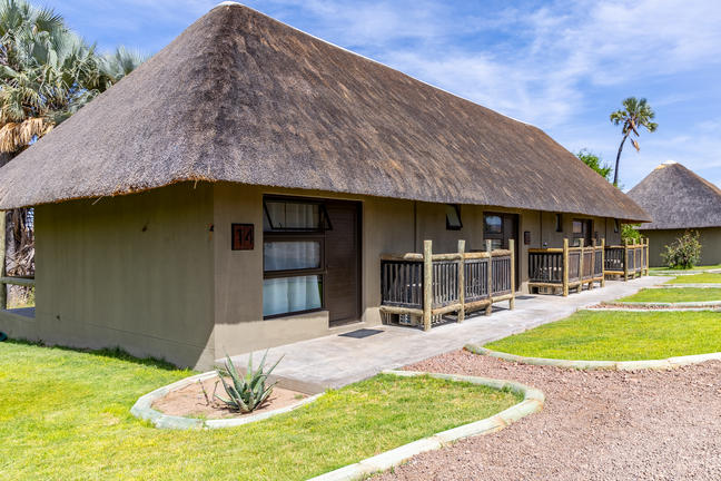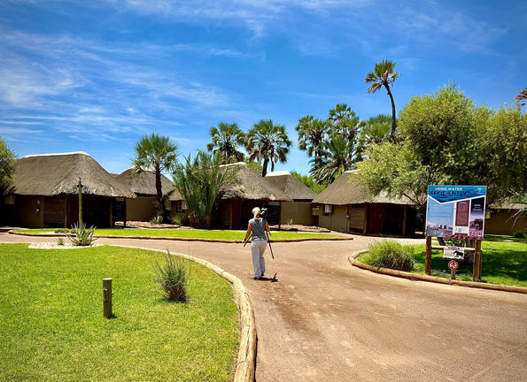 Das Okaukuejo Resort ist ideal gelegen, 17 km vom südlichen Eingang des Parks entfernt. Berühmt ist das Resort für sein beleuchtetes Wasserloch, an dem die Besucher aus nächster Nähe beobachten können, wie sich die Wildtiere versammeln und miteinander interagieren. Die komfortablen Gästechalets bieten einen Blick auf das Wasserloch. Die Busch-Chalets bestehen aus Doppelzimmern oder Familien-Chalets. Zu den weiteren Einrichtungen gehören ein Restaurant, eine Bar, ein Geschäft, ein Swimmingpool, ein Kiosk und Campingmöglichkeiten.