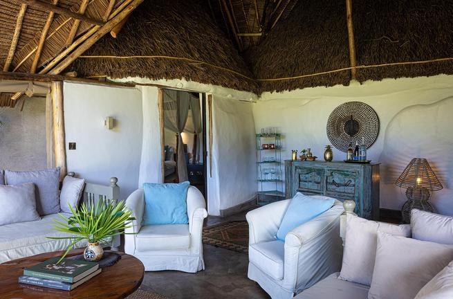 Le bandas hanno tetti in paglia, fianchi in pietra e tela e sono decorate con cura con accoglienti mobili morbidi, letti in cedro intagliati a mano e fiori selvatici raccolti a mano, saponi e articoli da toeletta senza parabeni.