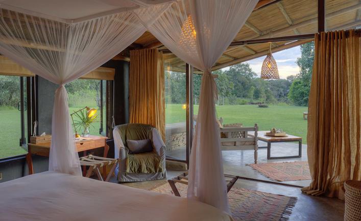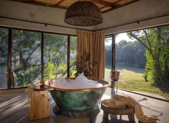 C'è anche un'ampia veranda per leggere e ammirare le stelle, prendere il tè del mattino presto con vista sul proprio tratto privato di fiume e leccare il sale che attira elefanti, giraffe e altri animali selvatici.