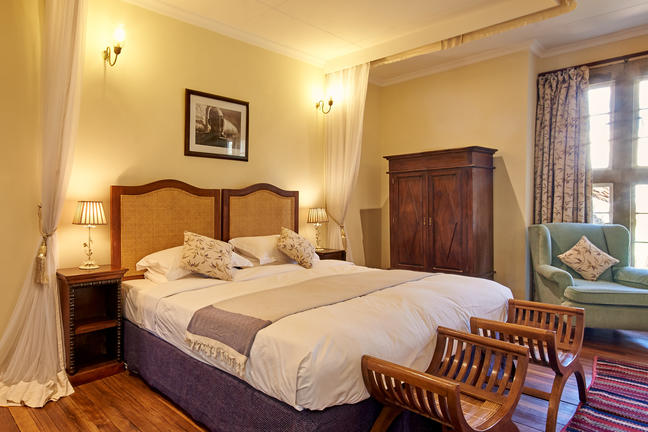 Helen-the-giraffe was born in front of the manor on 1st August 2009 but she sadly passed away in May 2015. Helen was a natural leader but she was also extremely naughty! She was the daughter of Daisy II. Helen was named after a catholic sister who was a friend of Betty Leslie-Melville who bought the manor with her husband Jock in the 1970s and began the giraffe breeding programme. Sister Helen was based in Tanzania and was responsible for bringing Betty to Africa for the first time. At 43 square-metres, this large corner room in the Garden Manor is one of the most spacious and is often visited by hungry giraffes looking for treats in the morning. Guests who stay here are most welcome to feed them from Helen’s windows before breakfast.
