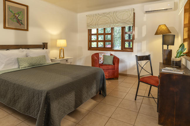 Equiped with One King Bed, efficient and quiet air conditioning, Wi-Fi in the room, mini-refrigerator, coffee maker, hair dryer, hot water, safe, elegant furniture, spacious bathroom and closet. Breakfast and free parking is also included during your stay.