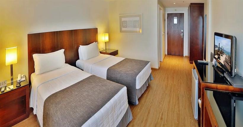 Habitación de 30m2, vista al contrafrente del hotel, con ventanas insonorizadas, camas twin, baño con ducha y secador de cabello. Mini-bar, LCD 32" y TV Satelital, caja de seguridad digital, internet WiFi sin cargo, y aire acondicionado frio/calor. Amplio espacio de trabajo.