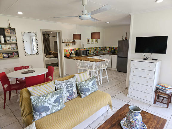 Het zwembad heeft ligstoelen, tafels en stoelen en is's nachts verlicht. Wij bieden BBQ / braai met keukengerei, servies en bestek. De lounge heeft volledige pakket DSTV, magnetron, koelkast en piano.