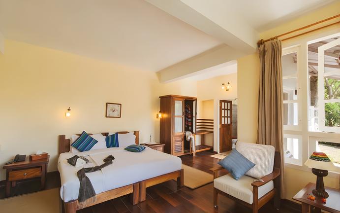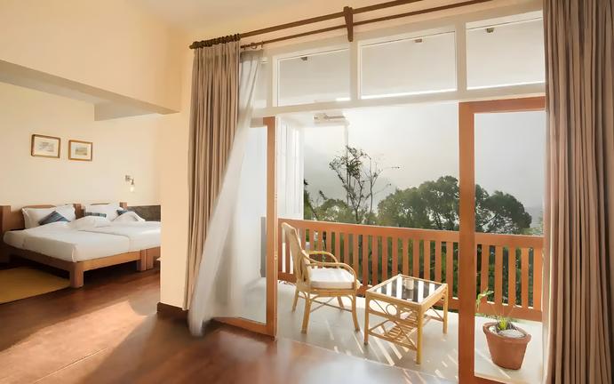 Windermere Estate is a tranquil retreat located in Munnar, Kerala, surrounded by lush tea and cardamom plantations. Nearby attractions include scenic tea valleys, plantation treks, and vantage points offering sweeping views of the majestic high ranges. Guest rooms feature rustic farmhouse charm with private balconies, handcrafted furniture, cosy interiors, modern bathrooms, and direct access to the gardens. Guests can enjoy personalised dining at the estate’s exclusive restaurant, where locally sourced cuisine is served course by course. Facilities include a swimming pool with panoramic views, a quiet library, birdwatching opportunities, and guided plantation walks, making it an idyllic escape into nature.