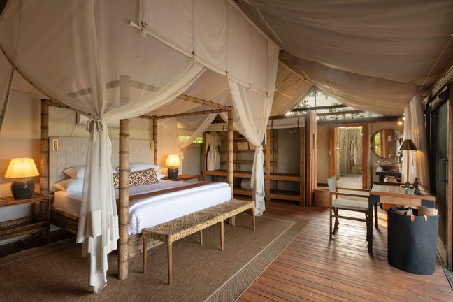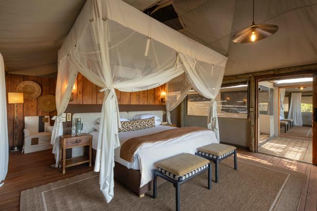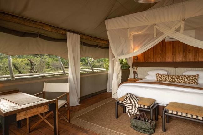 Accommodation consists of twelve tented units with en-suite bathrooms as well as outdoor showers. The main camp area boasts a lounge as well as a dining area and plunge pool, offering beautiful views.