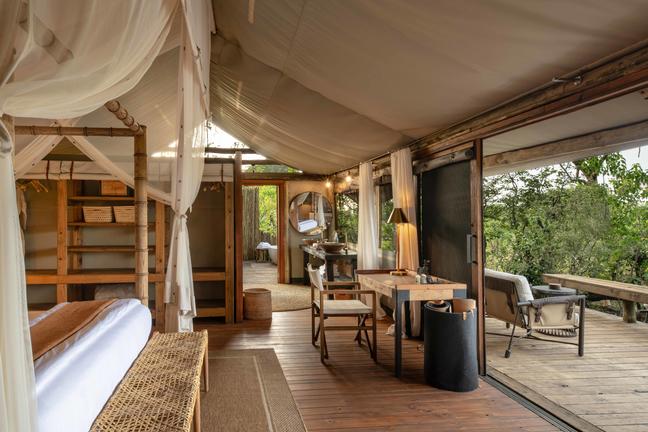 The lodge features 12 safari suites, including interleading options for families. Each suite is spacious and comfortable, complete with an en-suite bathroom and private viewing deck. Elevated to capture sweeping views of the surrounding bush and waterways, the rooms strike a balance between classic safari style and modern comfort.