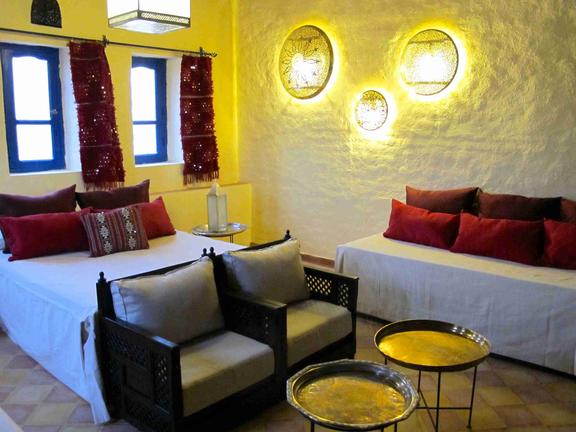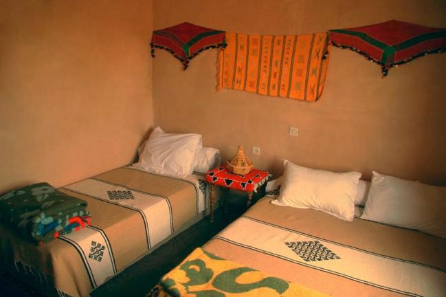 Les 14 chambres et suites traditionnelles de l'hôtel Kanz Erremal sont confortables et présentent une décoration typique et artisanale. Certaines chambres disposent d'un balcon et toutes offrent une vue sur les dunes du désert.