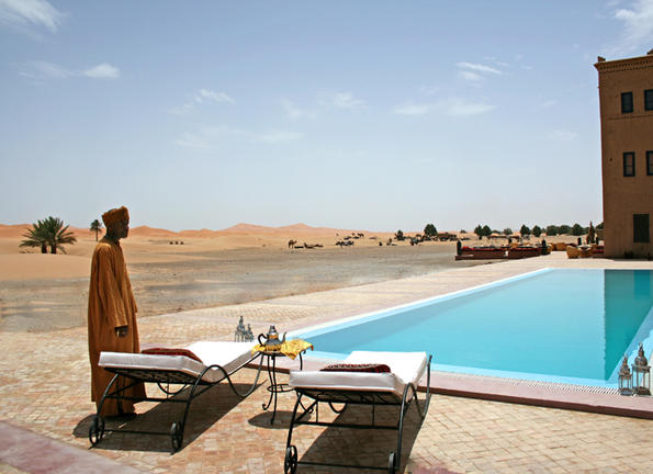 L'hôtel est situé dans la région de Tafilalt, le plus grand champ de palmiers du pays. L'hôtel est situé dans un endroit privilégié, à courte distance des dunes avec des vues fantastiques. Les dunes atteignent une hauteur de 200 mètres. Dans cet environnement extraordinaire, le voyageur découvrira la silhouette de Kanz Erremal.