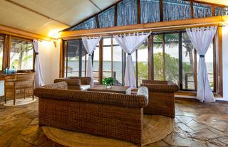 Natural shades of red, green and yellow are used throughout the rooms, resulting in an understated stylish feel, while subtle touches such as full-length mirrors and wrought iron coat stands add a tone of luxury. The furniture is locally made, and includes a bed, reading chair, wardrobe and dresser. The décor is enhanced by selection of artefacts from around Zanzibar. Each tent can be set up with a king-size double or twin single beds, and can take an extra child bed if necessary.
