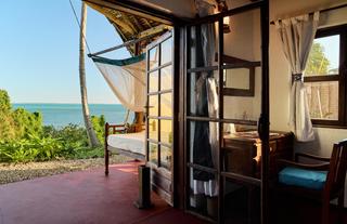 Accommodation at Pole Pole consists of charming bungalow-style cottages, traditionally built from local timber and palm thatch, each featuring en-suite facilities, cozy interiors with natural wood tones, and verandas furnished with daybeds, perfect for watching the sunset. Some cottages are set right on the beachfront and include private plunge pools, offering an extra touch of luxury while maintaining the lodge’s intimate, relaxed feel.