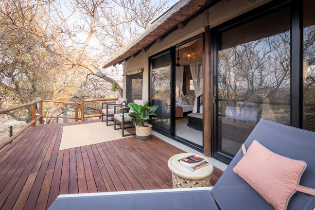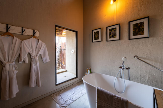 Three large Safari tents, featuring either a king-sized bed or twin beds. These tents combine the thrill of bush living with comfort, including air-conditioning, en-suite bathroom with a bath and outdoor shower and a private deck. Up to mid 2026 we are upgrading these tents to Superior safari tents, featuring convenient sliding doors and new fittings.