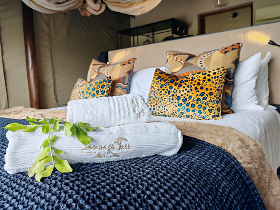 African-style luxury safari tented accommodation (double/twin) with en-suite bathroom (indoor bath and outdoor shower). Rate Includes: Air-conditioned room, breakfast, lunch, dinner, tea, coffee, wifi, 2 game drives on big 5 conservancy per day and VAT.