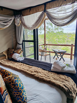 View from King bed to deck (twin available too)Credit: Sausage Tree