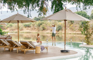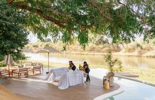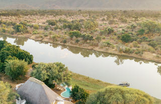 Time + Tide Chongwe House rests on a peaceful stretch of the Chongwe River, set against a beautiful mountainous backdrop.