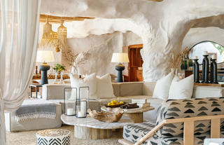 A two-storey, four-bedroom, four-bathroom private house, its design blends effortlessly into the undulating landscape around it, with river pebble accents and furniture carved from a fallen winterthorn tree. The house sleeps four to eight people and features private open-air bathtubs and waterfall showers, a large pool and spacious indoor and outdoor lounges with dining areas perfect for spending time together.