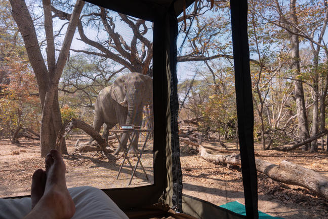 Profitez de 12 suites somptueuses sous tente, d'un service exceptionnel et d'une délicieuse cuisine préparée par notre chef exécutif. Détendez-vous au bord de la piscine à débordement, où les hippopotames et les éléphants se promènent librement, ou partez à l'aventure grâce à notre gamme d'activités : safaris, promenades dans la brousse, pêche et croisières au coucher du soleil.