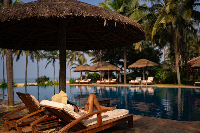 The Travancore Heritage is a seaside resort set in 15 acres of lush green coconut gardens located at Chowara near Trivandrum, Kerala. The resort stands on a high cliff overlooking the Arabian Sea and a long wide beach of powdery white sand. The accommodation consists of suites with modern conveniences such as private pools, balconies, air-conditioning, Wi-Fi and TVs. During their stay, guests can enjoy delicious meals and refreshing drinks at the on-site restaurants. Other facilities include a swimming pool, an Ayurveda centre, a beauty parlour, a games room, a library and a health club.