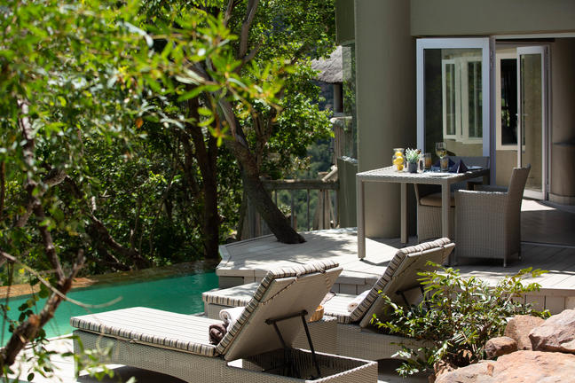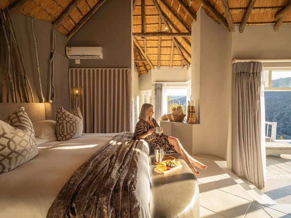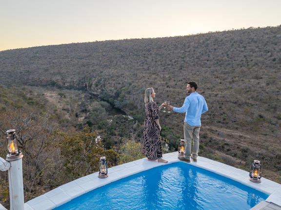 Luxury suites overlooking the flowing Sterkstroom River, each one perched on the edge of the cliff, with a private deck and plunge pool, the ideal opportunity to view game from the privacy of their suites. Indoor and outdoor showers and bathrooms with breath-taking views, complement the seclusion of these spectacularly positioned suites.