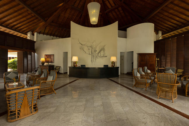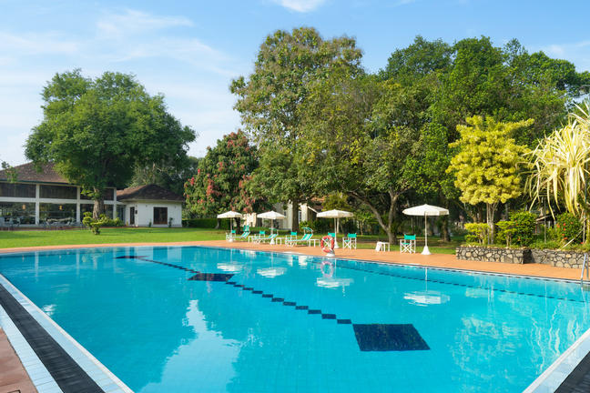 Spread over 27 acres of greenery, the Cinnamon Lodge in Habarana is an exclusive hideaway. The architecture was inspired by and depicts the Ritigala remains that dates back to the 6th century. The structures are surrounded by a forest of trees and connected by pathways. The serenity of the lodge, as well as the Azmaara Spa, creates a relaxing atmosphere.