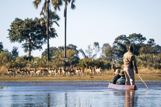 The Okavango Delta, the largest inland delta in the world and a UNESCO World Heritage Site, is rightly considered one of Africa's most incredible wilderness sanctuaries. With an area of 16,000 square kilometres filled with water channels, lagoons, and islands, this remarkable area is a wetland paradise located deep within the arid Kalahari Desert. Each year, floodwaters flow from their catchment areas in the Central African highlands of Angola over 1,000 km (620 miles) away into the Delta to create the Okavango miracle. This unique area sustains a huge diversity of fauna and flora, so game viewing is excellent year-round.