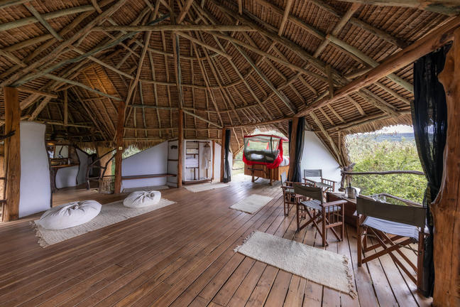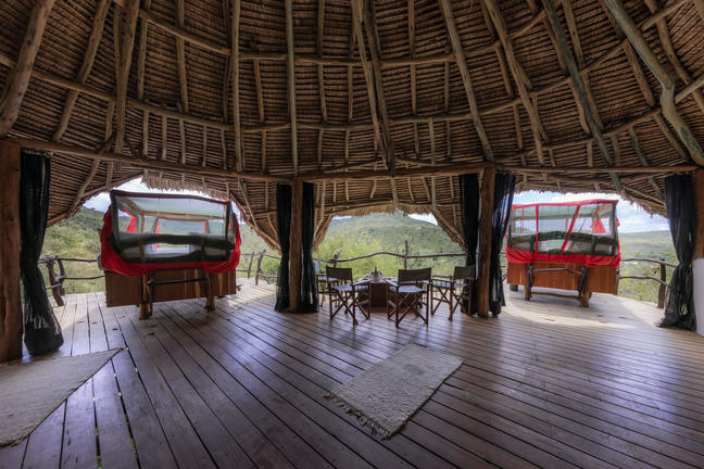 The Star Beds are unique to Loisaba with handcrafted four-poster wooden beds on wheels. They sit on raised wooden platforms that jut out from a thatched-roof accommodation. Guests can opt to sleep under the roof or have the bed wheeled outside where they can sleep under the endless African night sky.