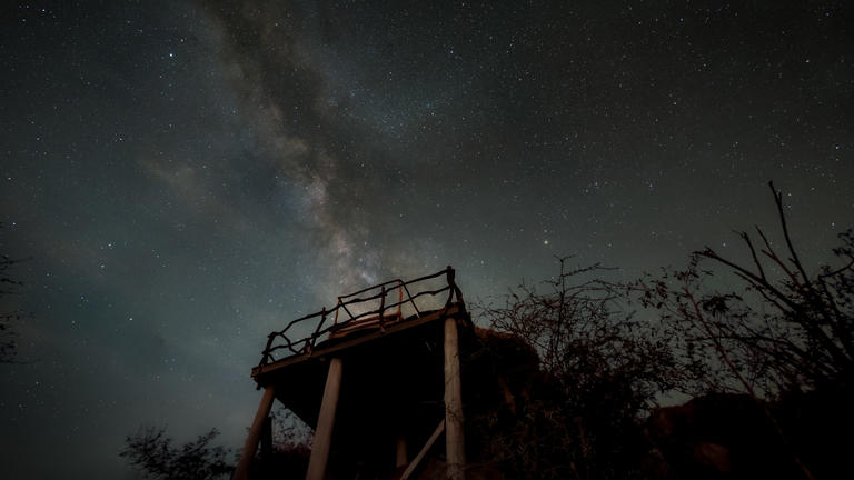 Elewana Loisaba Star Beds has 3 ensuite Double Star Bed Platforms. Each comprises a main area with wardrobe, seating area and safe which sits under a thatch roof. A large balcony extends out, and the Star Bed can either sit under the thatched roof of the accommodation, or be wheeled out to rest under the night sky.