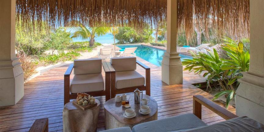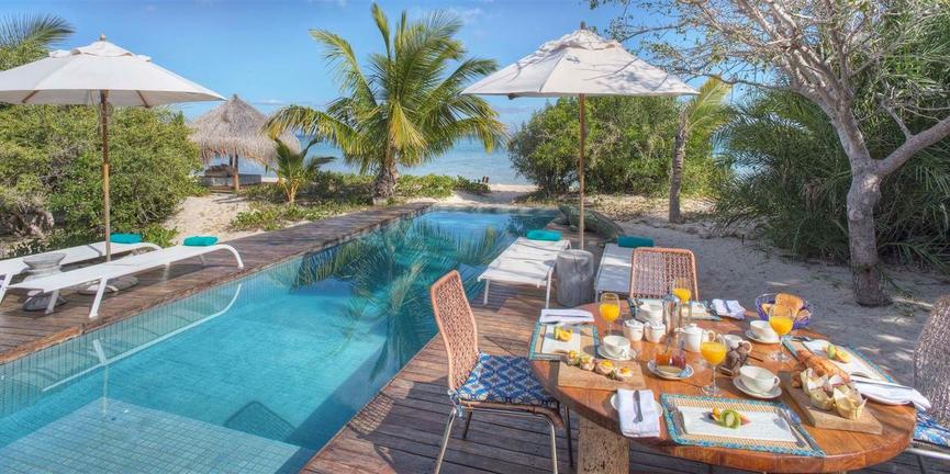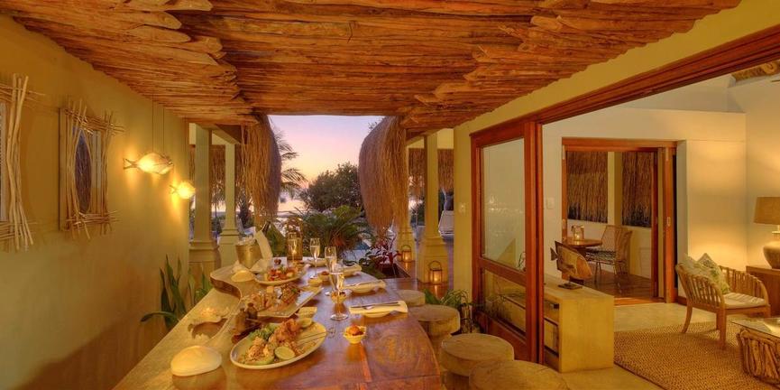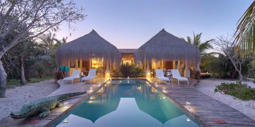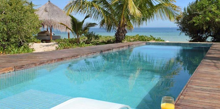 Villa Amizade is a 2 bedroom en-suite villa, located at the western end of the Azura Benguerra Island property, with fantastic views out to sea and towards the setting sun. The villa is ideal for families or couples requiring more space and facilities. Facilities include a sitting area with flat screen TV, DVD, Sound Dock and a selection of games. The sitting area opens onto extensive decking, dining and relaxation areas, including a wine bar.