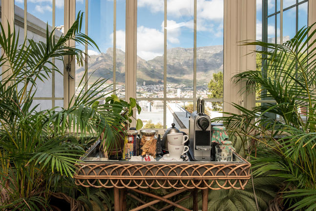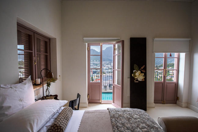 The Dorp Hotel is often referred to as Cape Town's best-kept secret and the most mysterious hotel in the city. The views and location of the Dorp—discreetly perched above Bo-Kaap, high on the slopes of Signal Hill—are breathtaking. From here, the city is overshadowed by Table Mountain and its companion, Devil's Peak, while the blue Atlantic stretches to the east and the Twelve Apostles mountain range rises through Kloof Nek to the west.