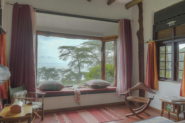 On the shores of Lake Naivasha in a private 300-acre wildlife sanctuary. Olerai Cabin is a colourful and cosy private house that sits under the canopy of towering acacia trees, with emerald green lawns that stretch down to the lakeshore.