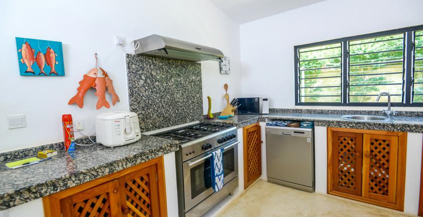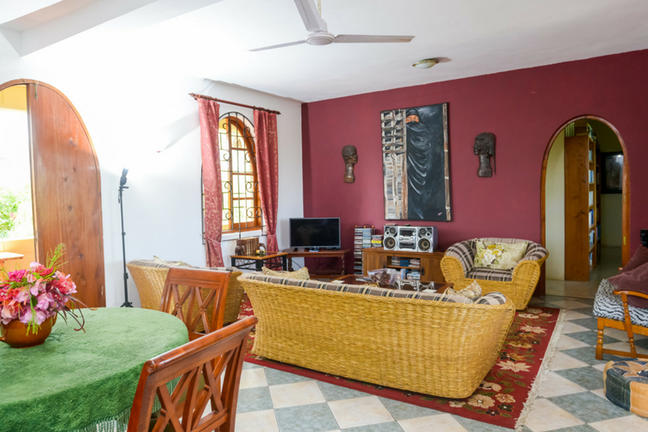 This 4-bedroom house is situated on a low coral cliff, with spectacular baobab tree on the lawn and a stair case that leads directly onto the beach from the garden.