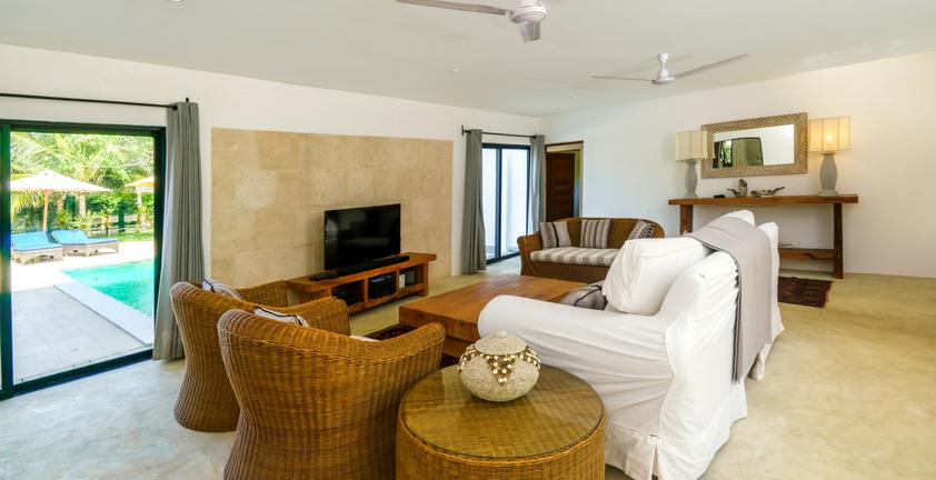 Step directly from your private pool and garden onto the pristine, soft, white sands of Galu Beach, indeed the staff at the house will move the sun loungers under the palm trees at the front of the house for your own private beach set up.