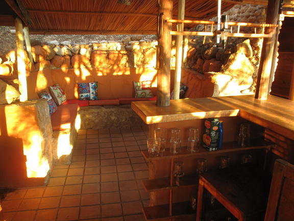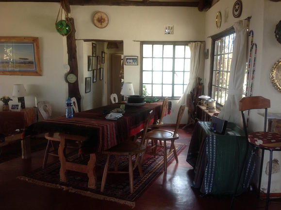There is a lovely open fire place with a living room and a dining room, a great veranda and a pool (depending on the availability of water at the time).