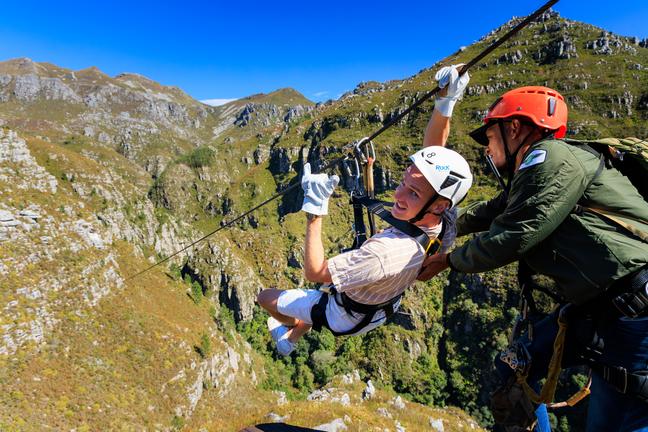 Includes: All equipment and training, the return 4x4 experience from our base up into the mountain, the 4 hour fully guided mountain-top zipline adventure along 13 elevated platforms and 11 slides, small exclusive groups of 8-9 people, two fully trained Cape Canopy Tour Guides.